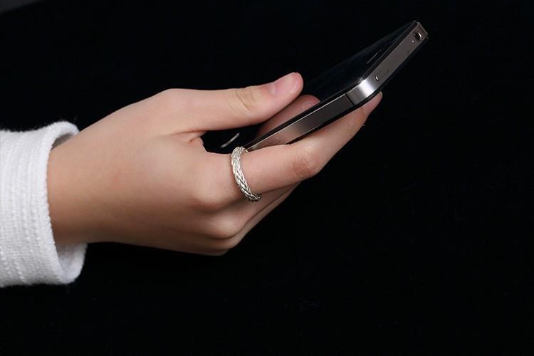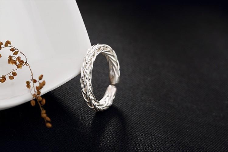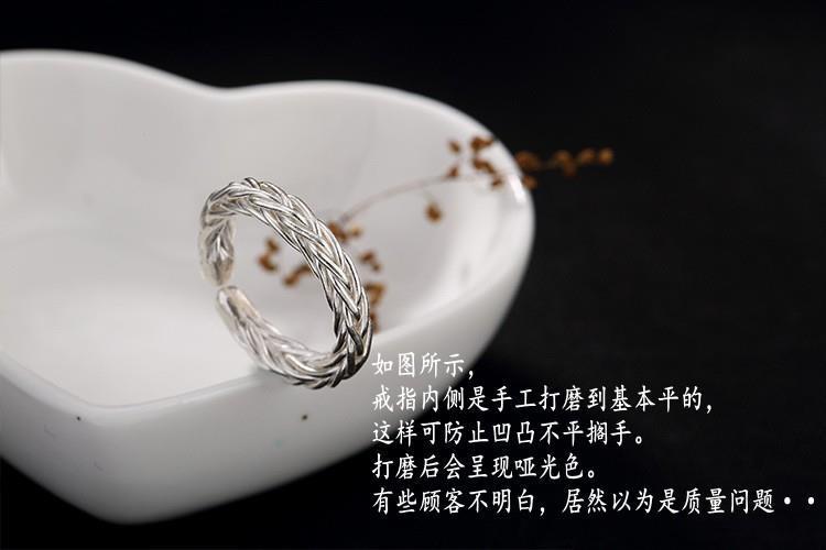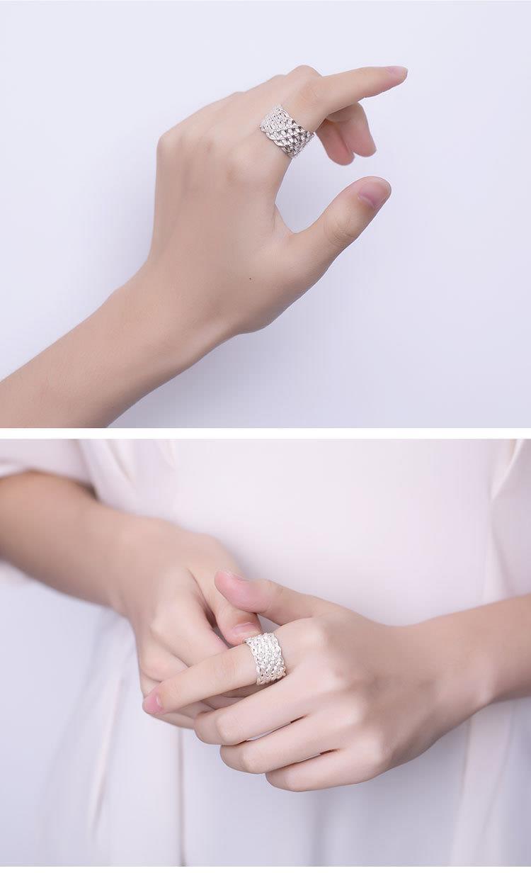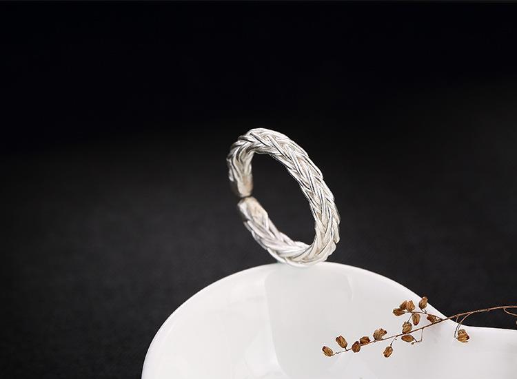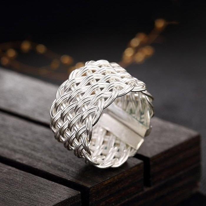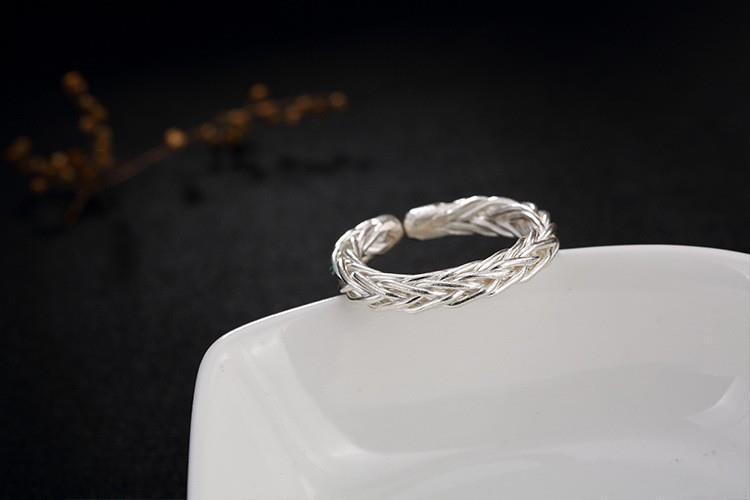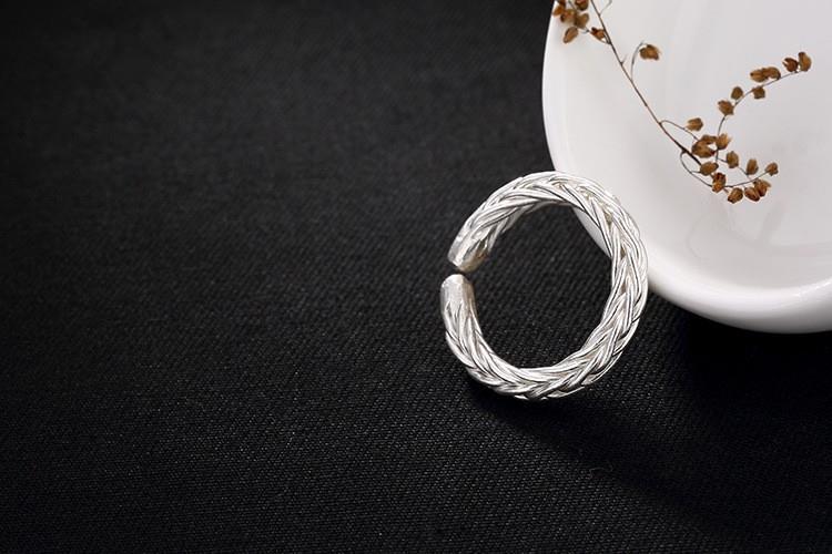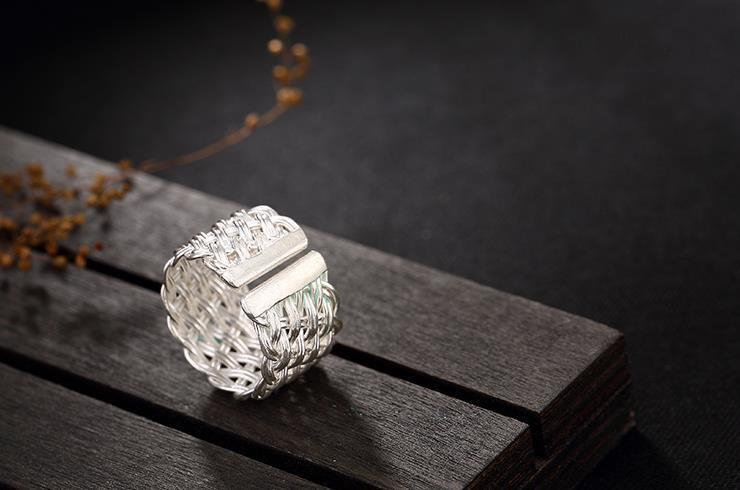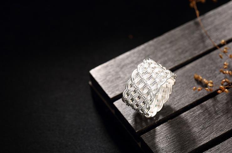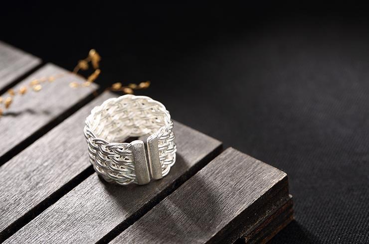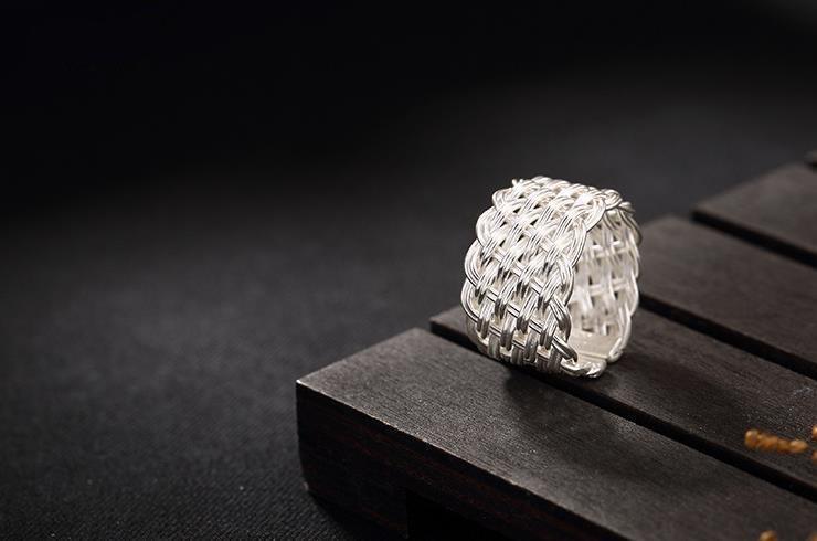 ワイド編みオリジナル925純銀手作りレトロ個性開口潮人差し指男女指輪リングデザイナー新作