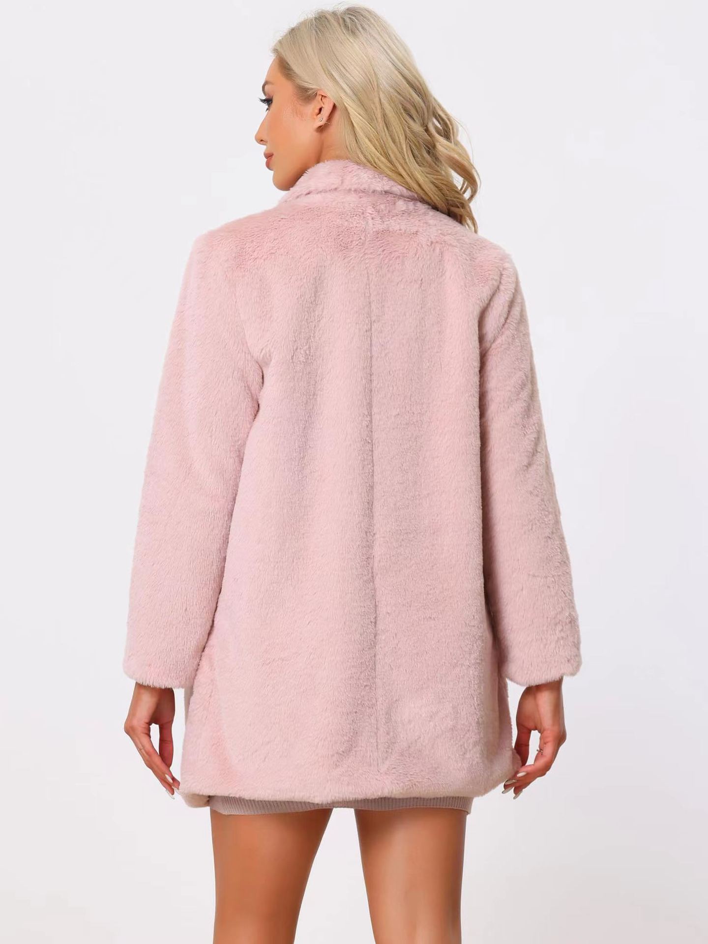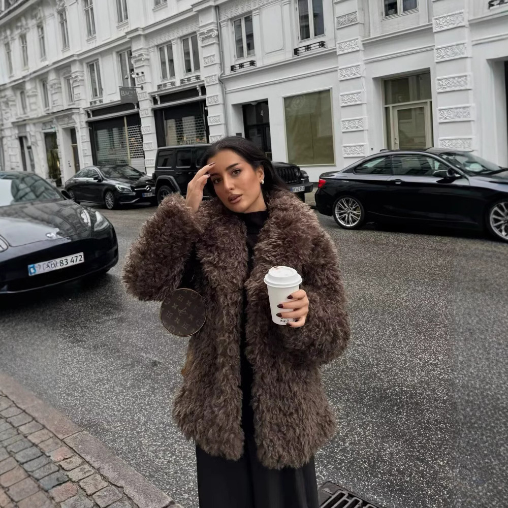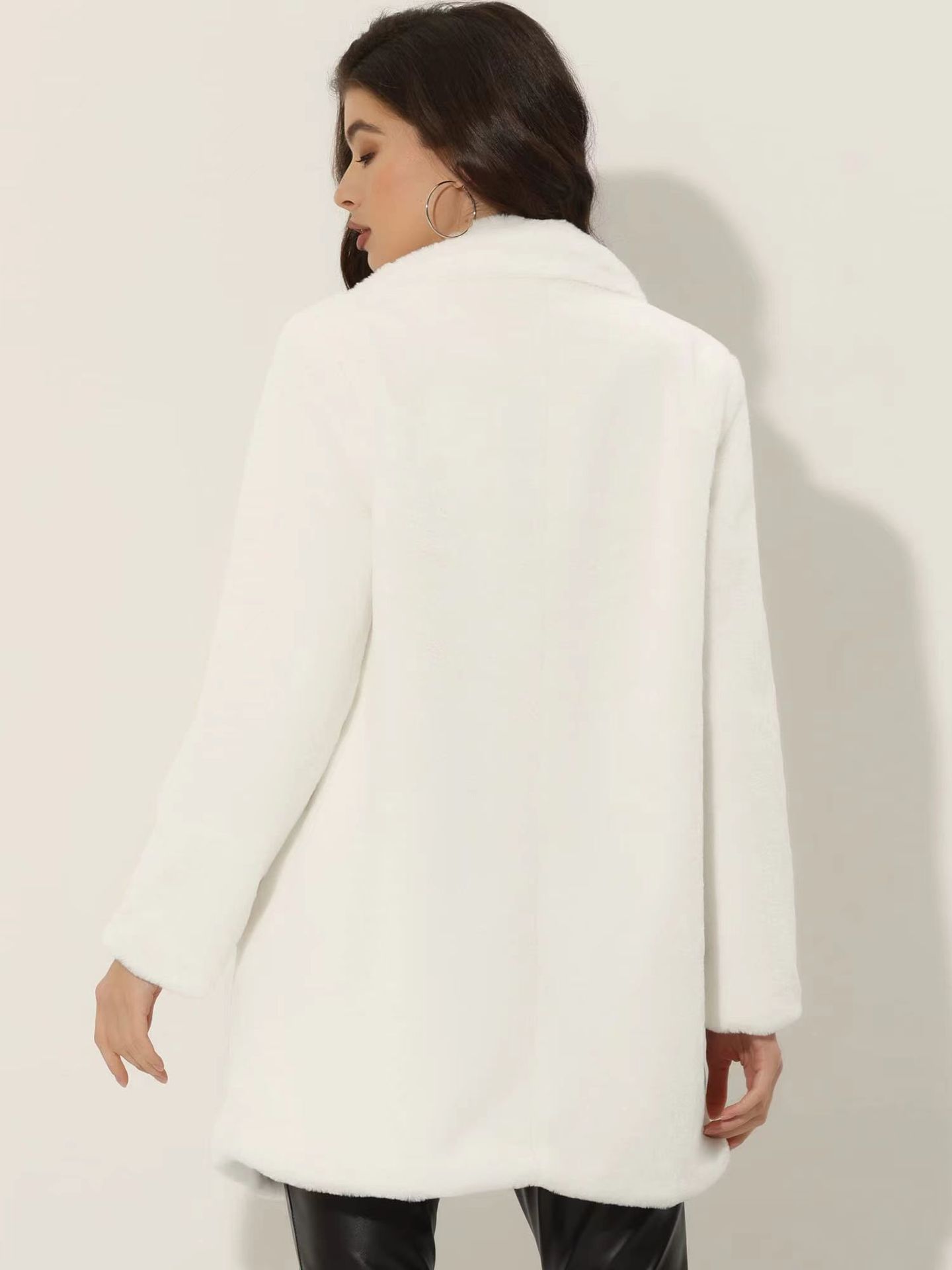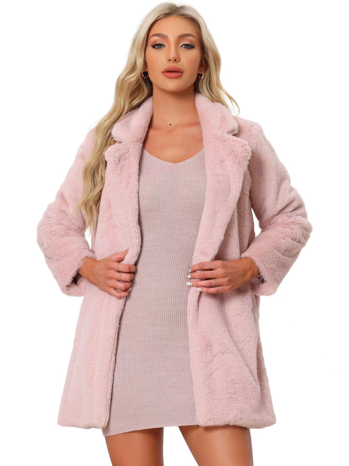 亚马逊欧美秋冬跨境仿獭兔毛皮草中长款女士外套时尚西装领大衣