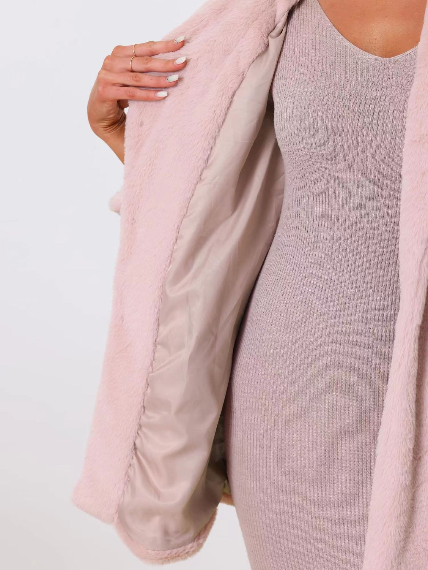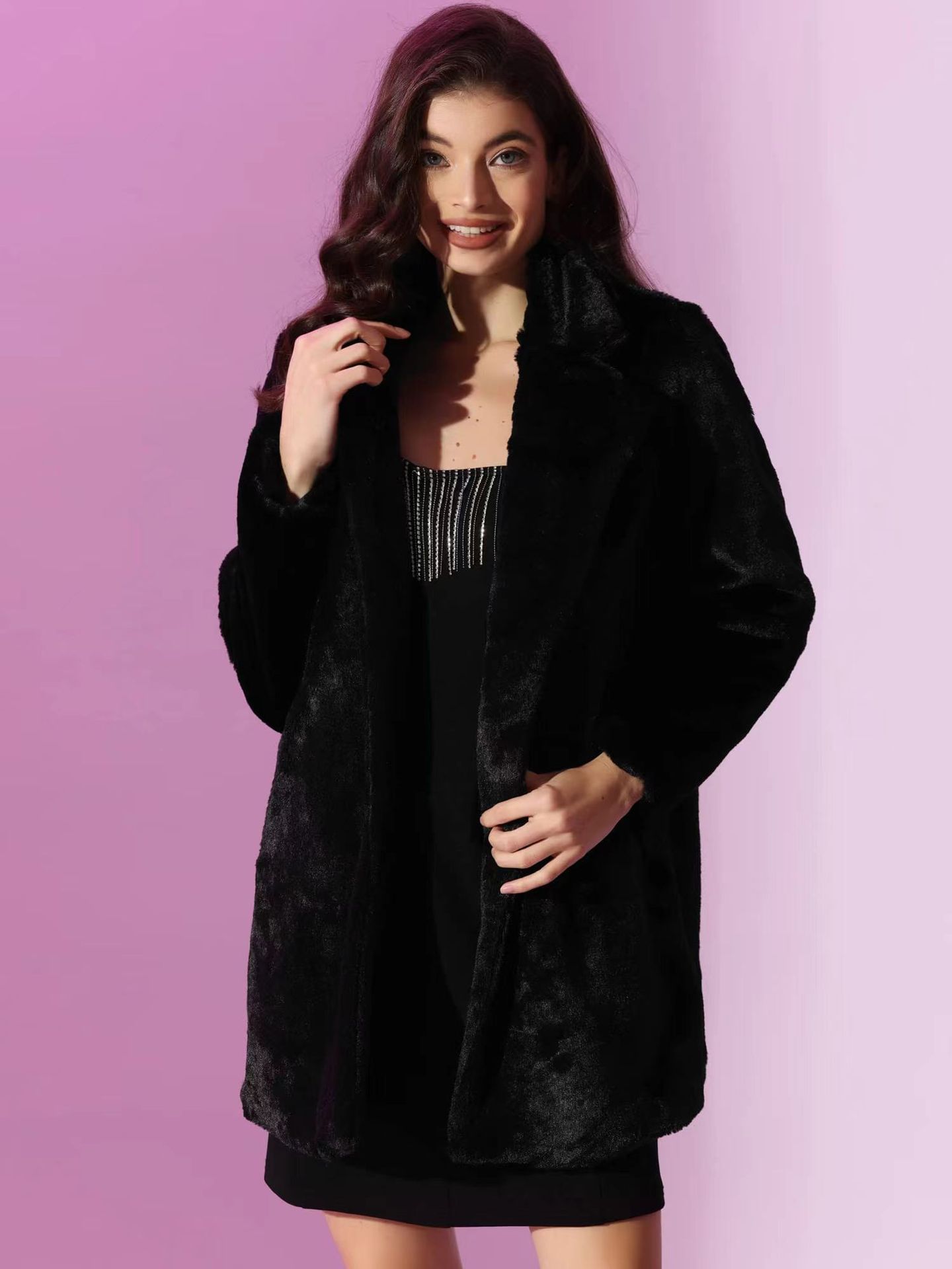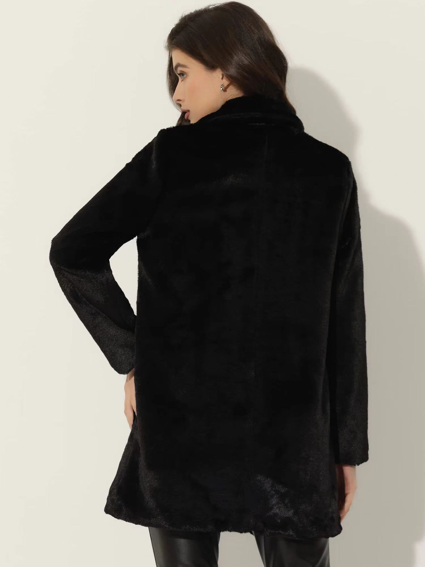 亚马逊欧美秋冬跨境仿獭兔毛皮草中长款女士外套时尚西装领大衣