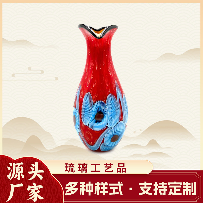 创意古法琉璃花瓶手工艺琉璃花瓶心口简约花瓶送礼乔迁新中式摆件