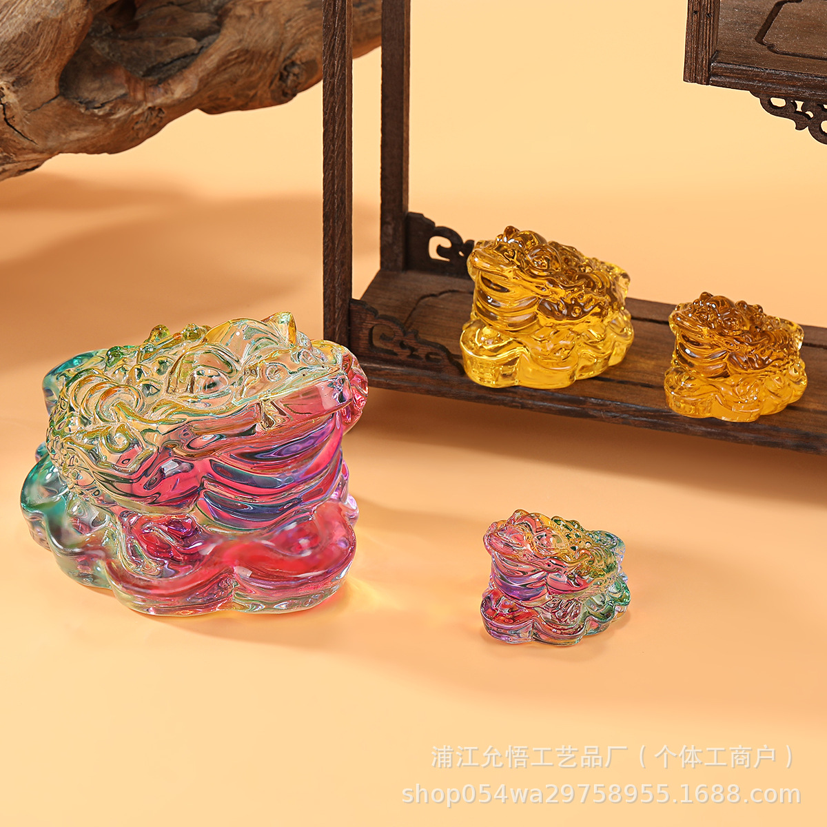 瑠璃の金のヒキガエルの置物の3足の金のヒキガエルの工芸品の水晶の金のヒキガエルの元宝の開業する贈り物は宝の置物に入ります。