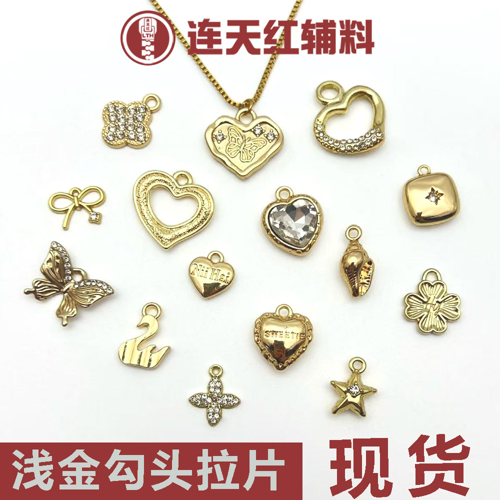 可拆卸浅金色爱心镶钻吊坠金属饰品配件diy项链手链挂件服装辅料