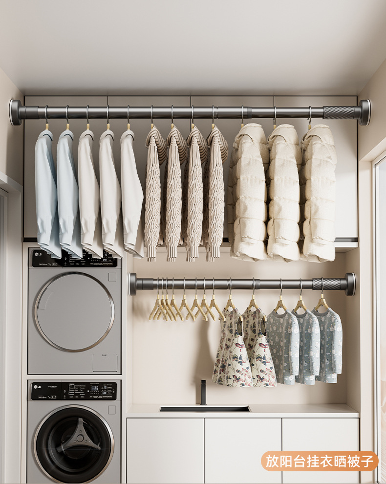 室内の洗濯棒は穴を開けないで洗濯棒を干します。