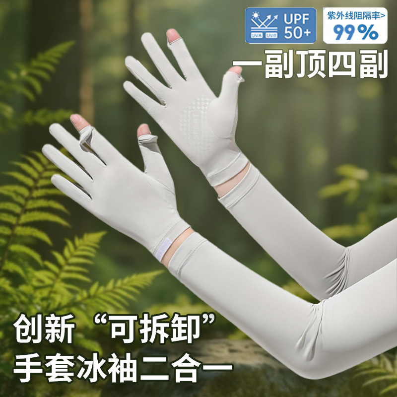 防晒手套女士长款夏季骑行电动车防滑透气冰丝袖套徒步分体冰袖男