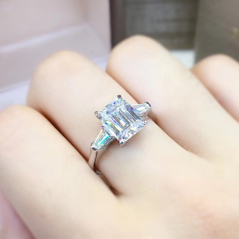 新商品の王女の方の白いドリルは莫桑石の長方形の開口の指輪をシミュレーションします。
