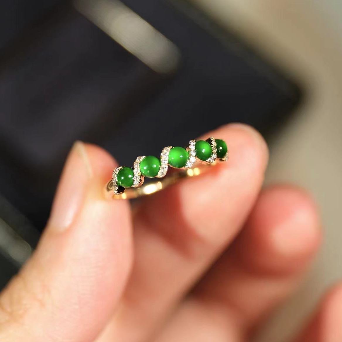 緑玉髄新中国式国風925純銀指輪は高炭素ドリル氷種光沢面気質小衆デザインを象眼しています。