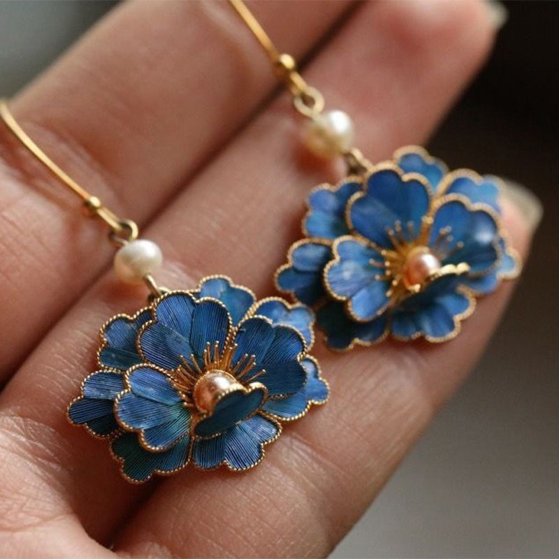 新商品の景泰藍漢服のチャイナドレスと金メッキの焼藍彩故宮の同じタイプのレトロな竜鳳の精巧なイヤリングのピアス