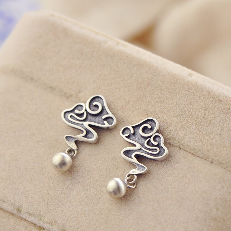 クロスボーダー2024人気アクセサリー卸売り復古文芸風祥雲円球ペンダント耳飾りの個性シンプルな女性