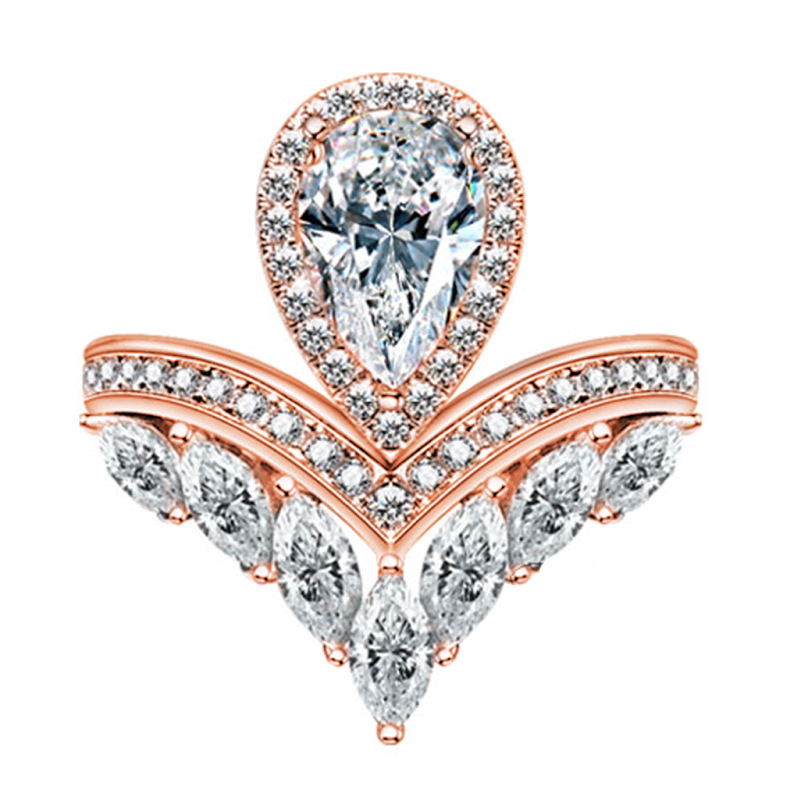 新商品のクラウンの莫桑のダイヤモンドの水滴の形のジルコンのダイヤモンドの指輪は18kのプラチナのジルコンの馬の目の婚約の指輪をめっきします。