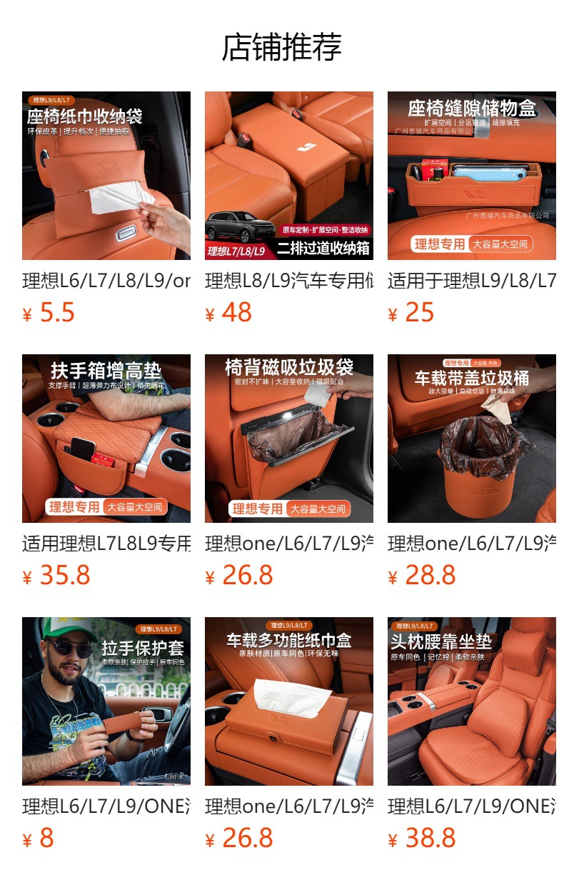 理想L8/L9カー専用収納ボックス二列通路レザー車用後部座席理想one折りたたみ収納ボックス