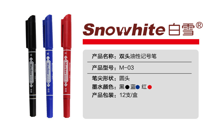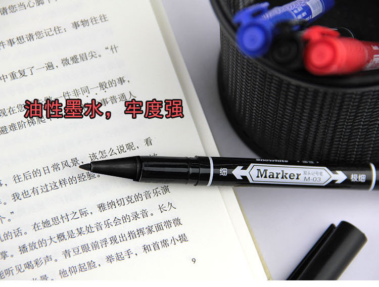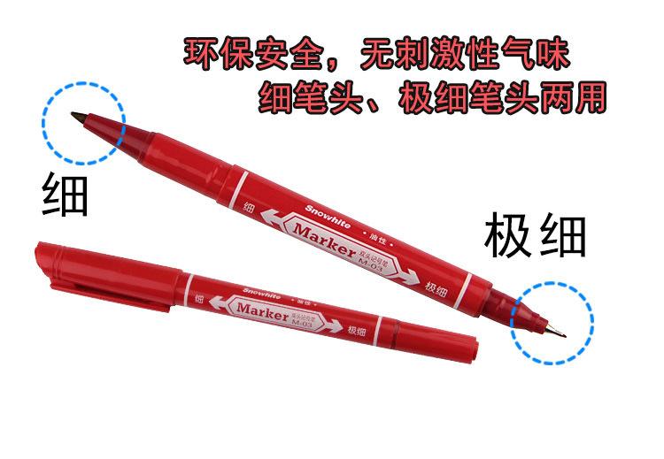白雪m03小双頭マーカーペン油性線筆黒マークペン美術用線線防水速乾