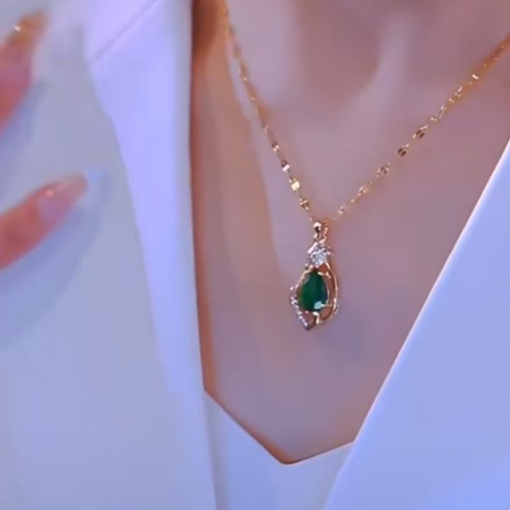 ウォータードロップネックレス女性のシンプルな個性ファッション多用途ペンダント 2025 新しいエメラルド