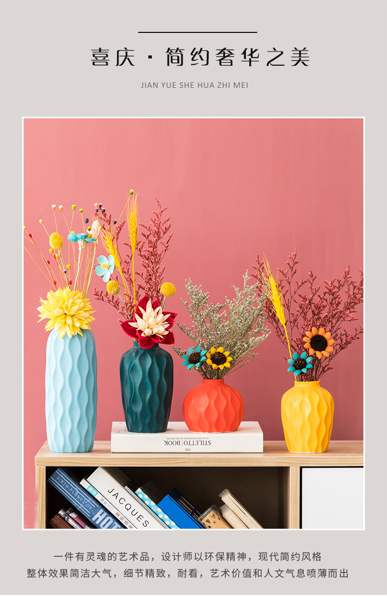 シンプルins風北欧陶磁器花瓶置物創意現代軽豪華食卓客間生け花ドライフラワー装飾品