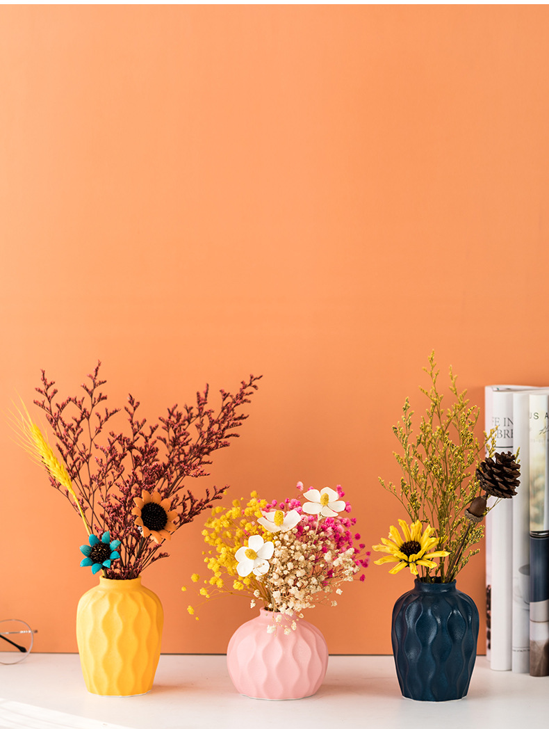陶器花瓶3点セット、シンプル陶器花瓶、フラワーアレンジメント、ホームセット、フラワードライフラワーセット、越境限定