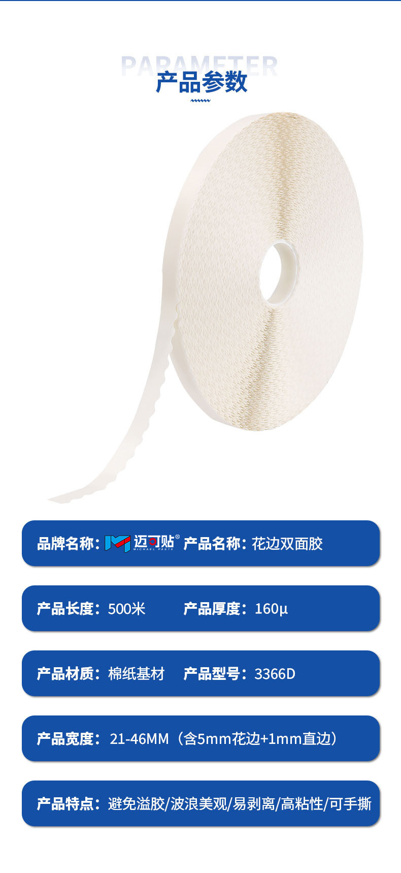 卸売りチャック箱波レース両面テープ機用大巻き両面テープ現物留辺ギザギザ辺両面テープ