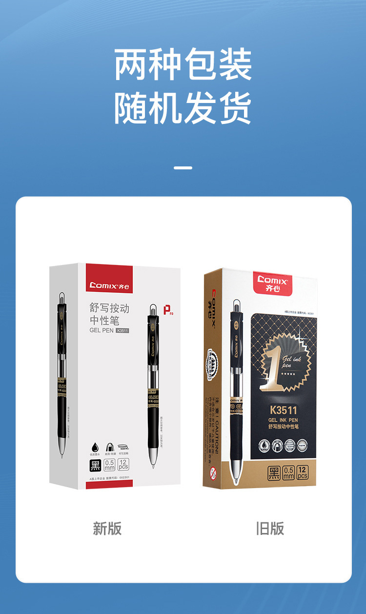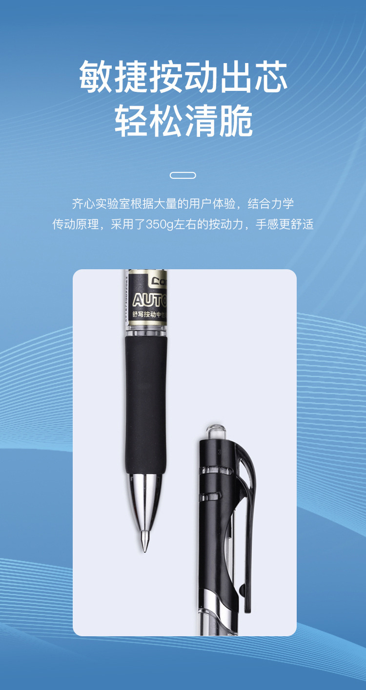 齐心按动中性笔水笔学生用考试碳素黑色水性签字笔芯0.5mm按压式