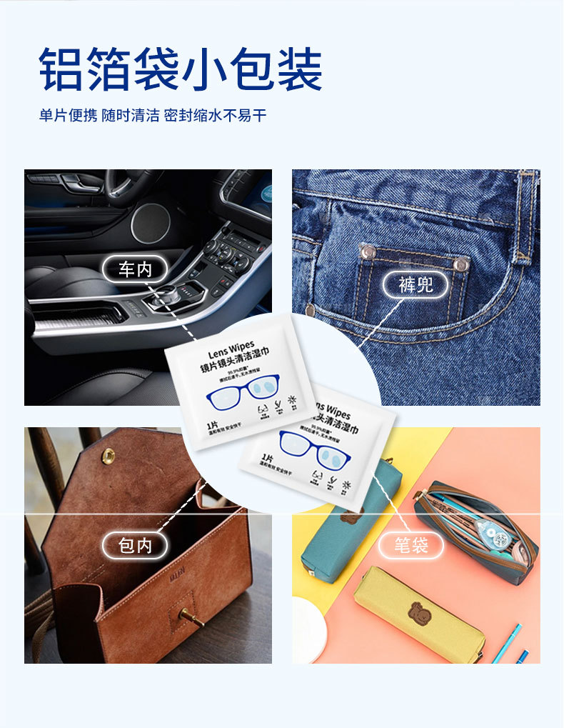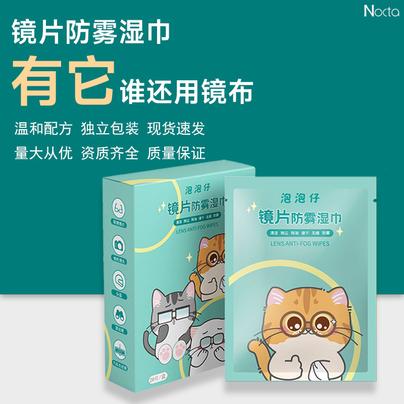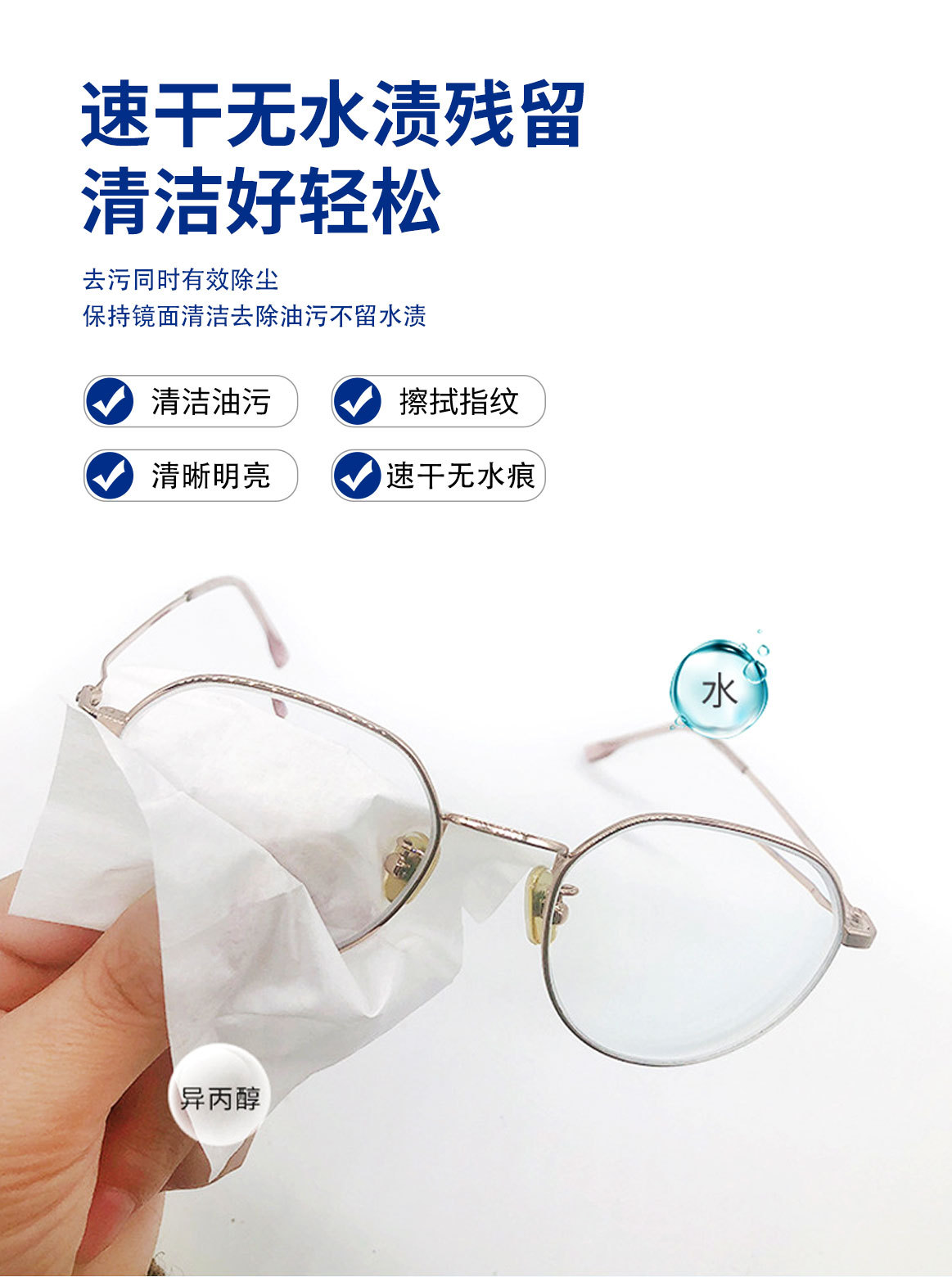 小紅書と同じスタイルのメガネ用曇り止めウェットティッシュ、使い捨てで携帯に便利、レンズクリーニング用