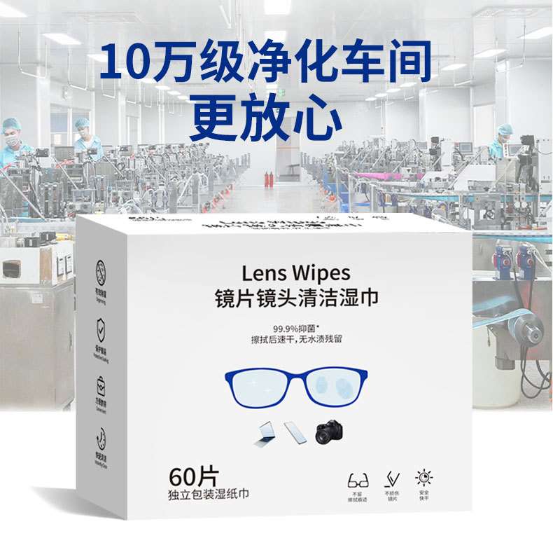 メガネ防曇拭き60枚箱の鏡拭き紙を入れて、一度にレンズメガネを入れて、ウェットティッシュをきれいにして、スクリーンを拭きます。