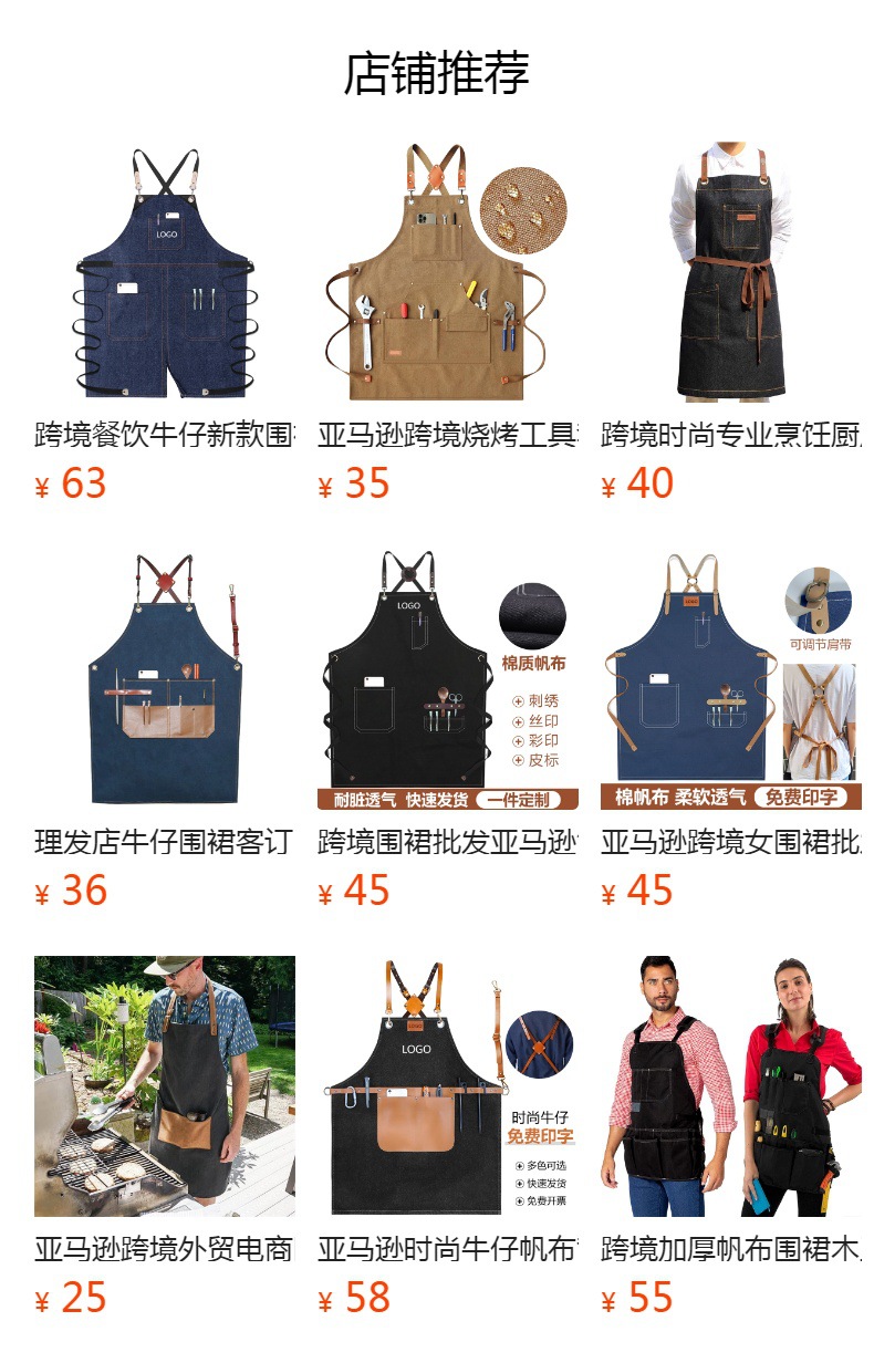 アマゾンクロスボーダーキャンバスエプロン綿オーダーメードロゴカフェ理髪師作業服エプロンメーカー卸売り