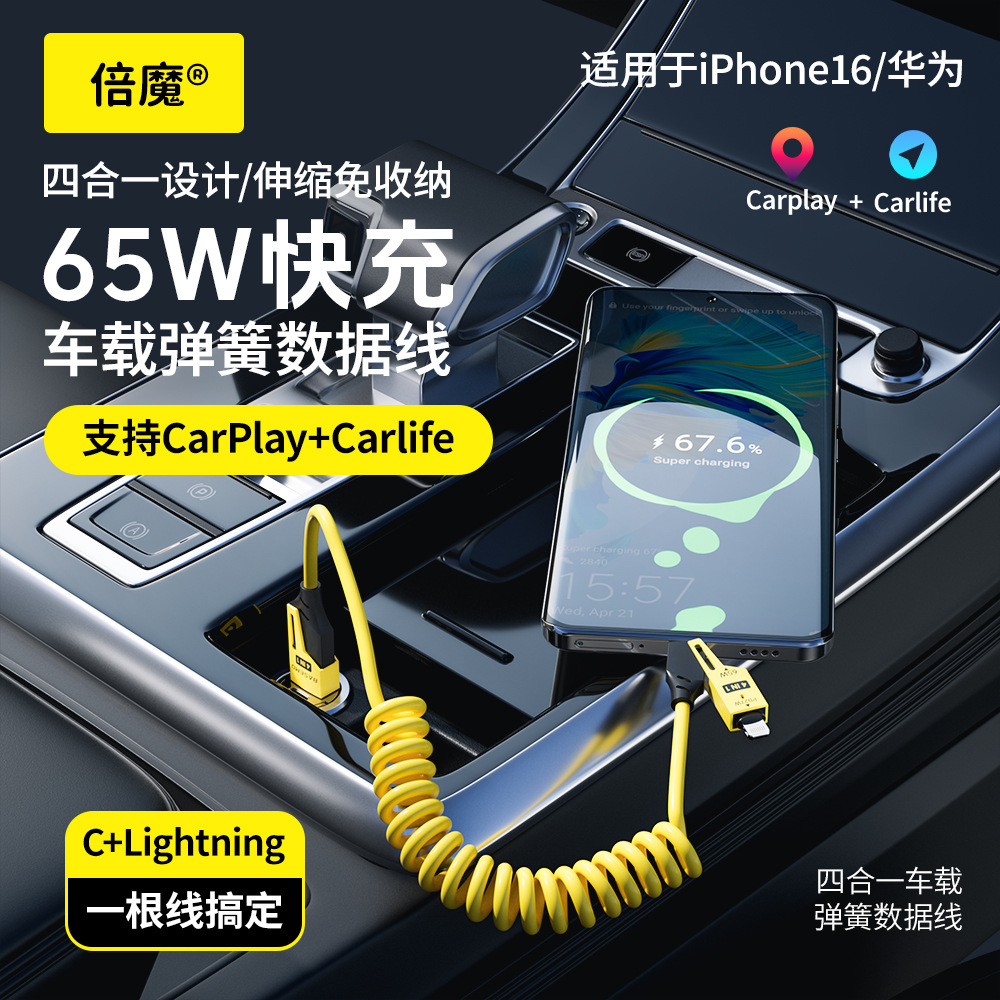 [DY ホットセール 50W+] Apple 16 Huawei に適したデュアルマジックスプリング格納式フォーインワン 65W 高速充電データケーブル