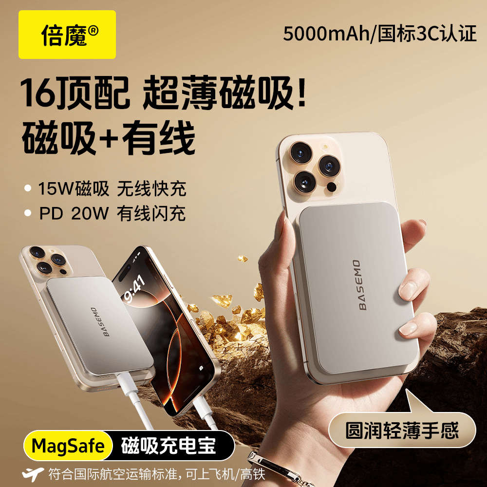 [3C認証] MagSafe 5000mAh 磁気超薄型ワイヤレスモバイルバッテリーは低温で充電可能