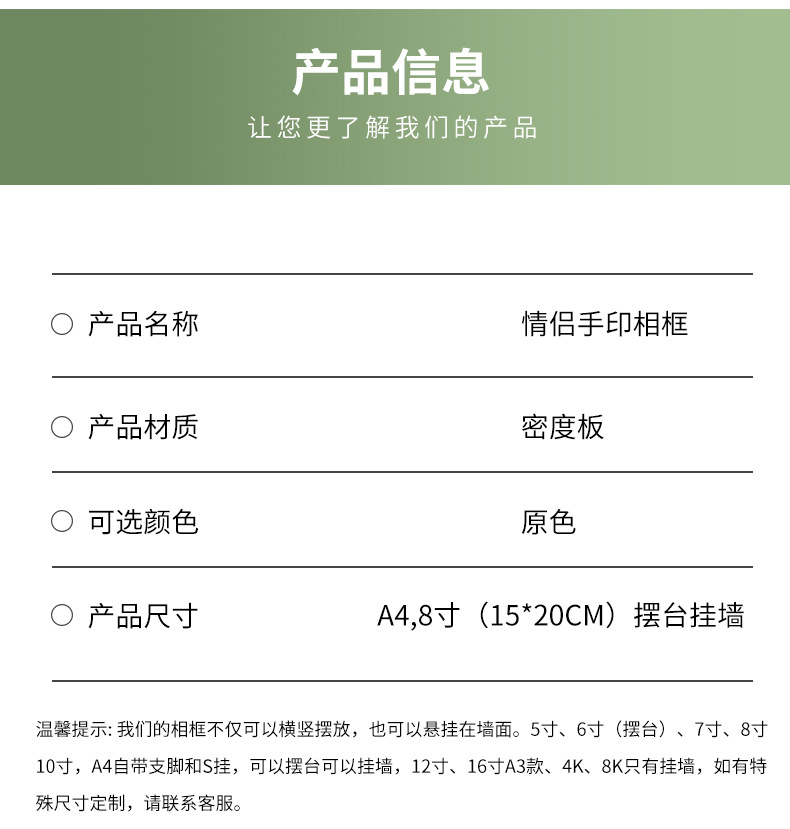 メーカースポットdiyカップル赤ちゃん手形フォトフレームシンプルな額縁に壁を掛けた10インチ60/箱