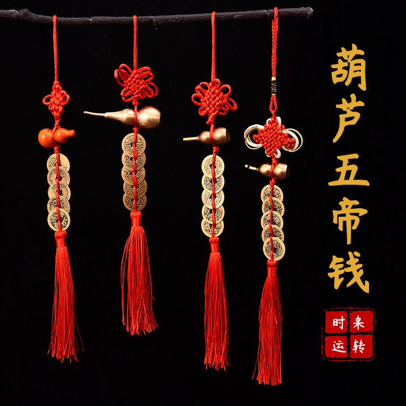 五帝のお金の掛け物のヒョウタンの卸売りの純銅の中国のドアのヒョウタンの串はドアの枠のトイレの吉祥の結び目のペンダントを押さえます。