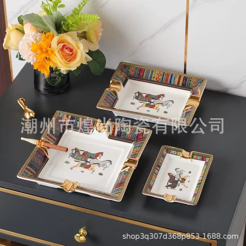国境を越えたヨーロッパ風の愛家方形陶磁器灰皿は贅沢でレトロな家庭用リビングオフィスの葉巻灰皿である