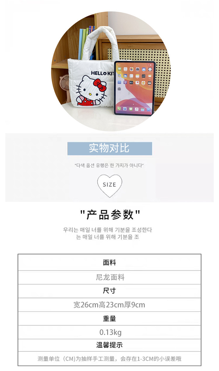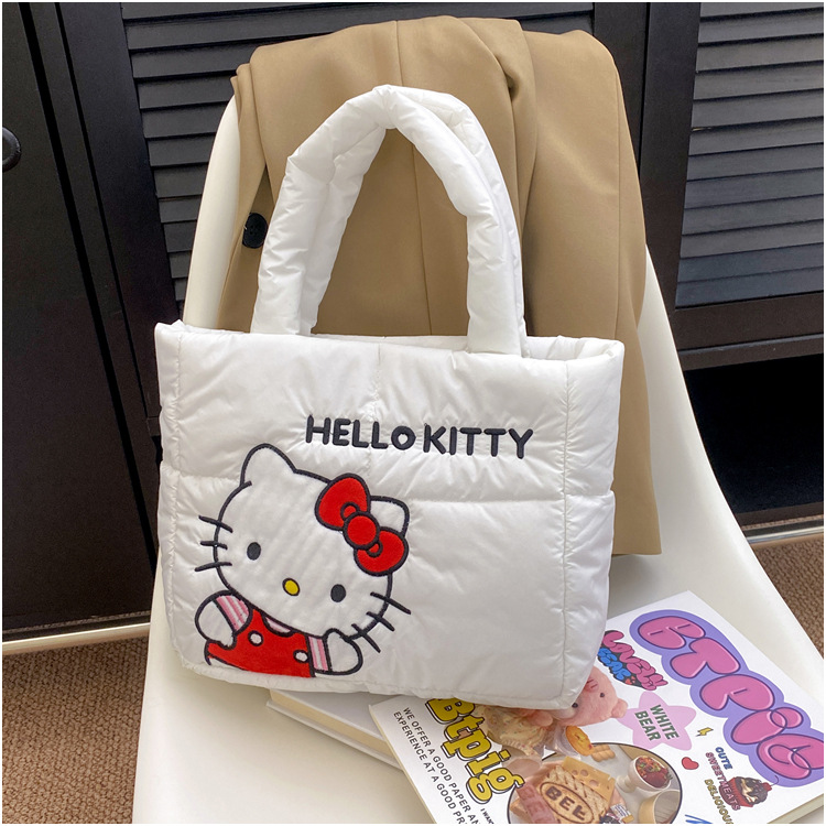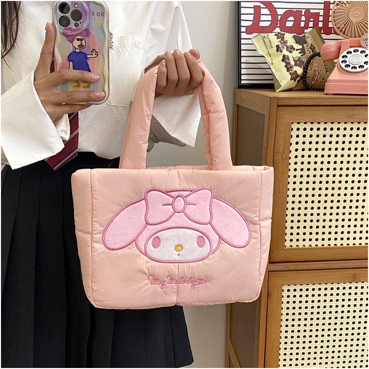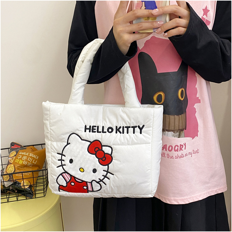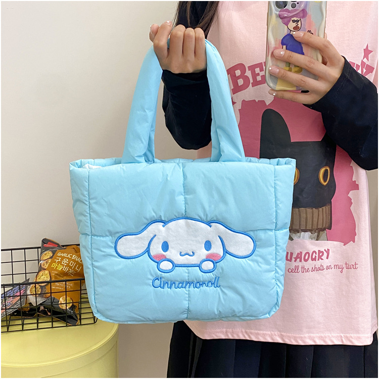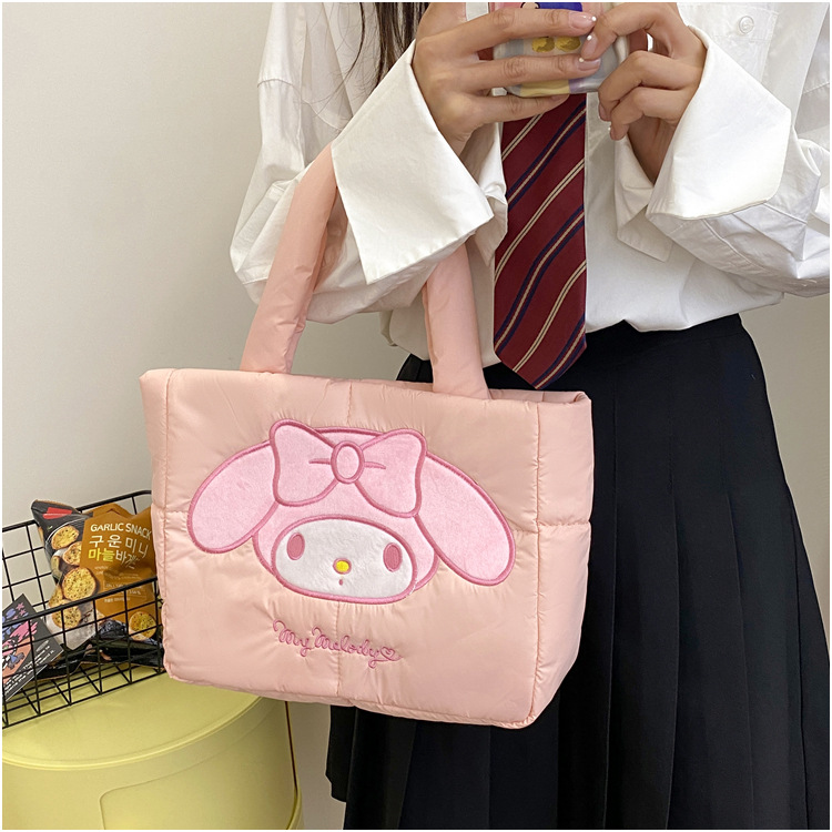 新款卡通日系ins可爱刺绣羽绒布轻便手提包少女心单肩通勤手拎包