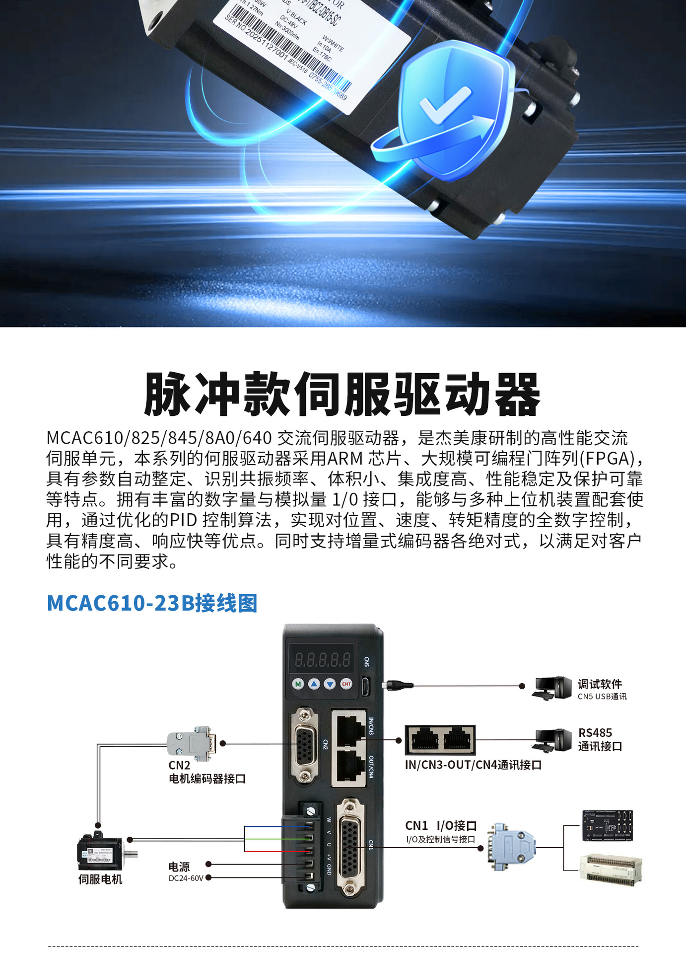 杰美康60/80/130低压伺服电机驱动器200W750W3KW总线RC/PN/EC通讯