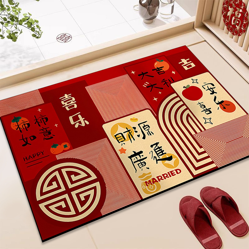 2026年新款红色喜庆大吉大利硅藻泥地垫浴室卫生间门口脚垫玄关垫