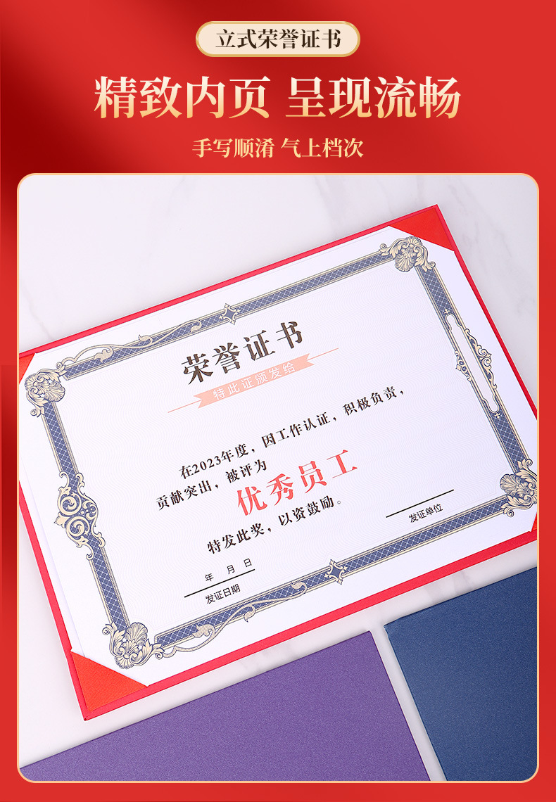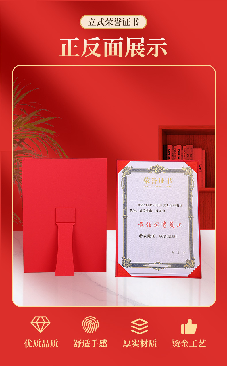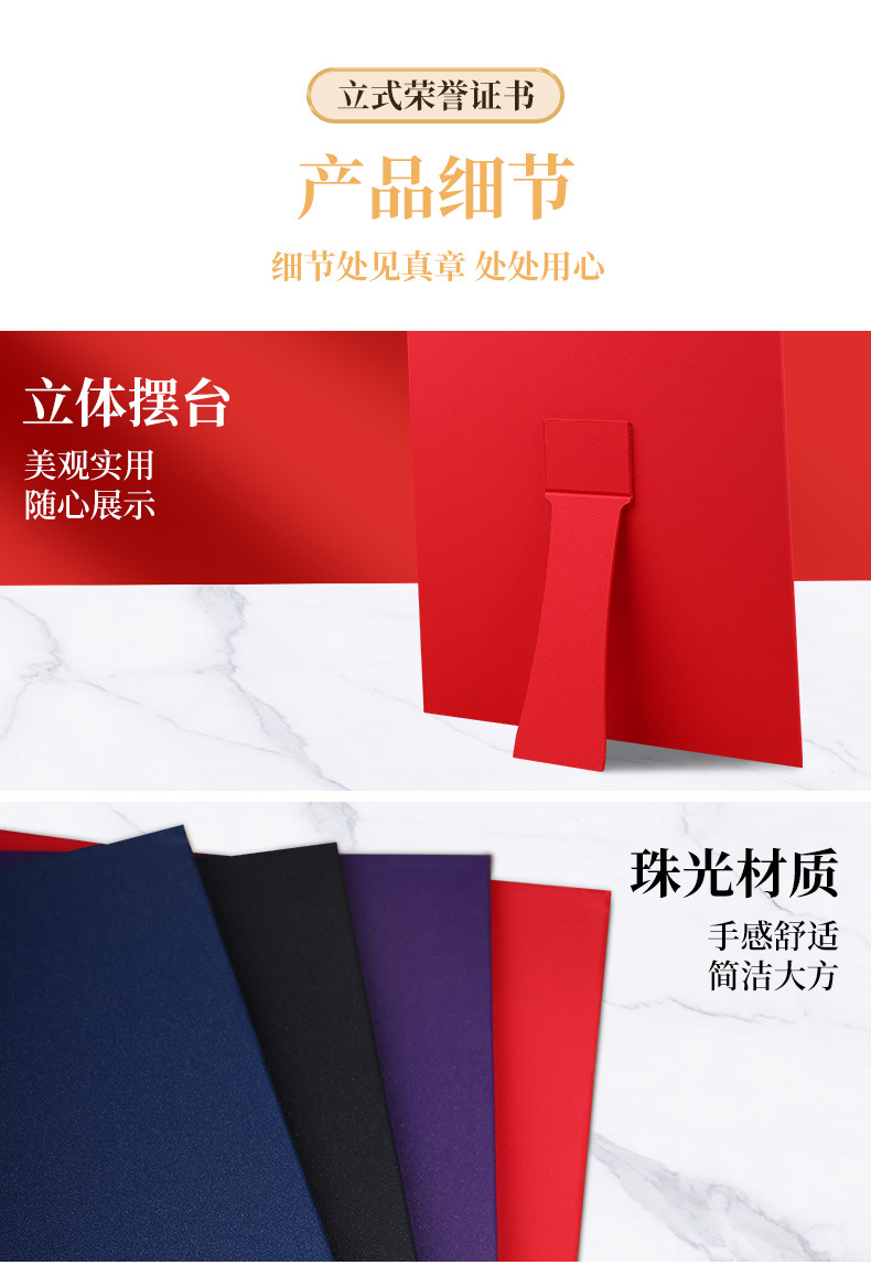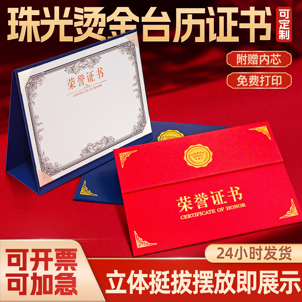 荣誉证书定制三折摆台式培训毕业外壳高级感珠光聘书结业获奖证书