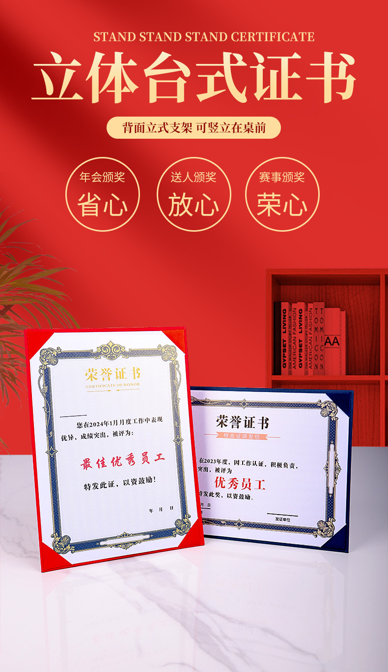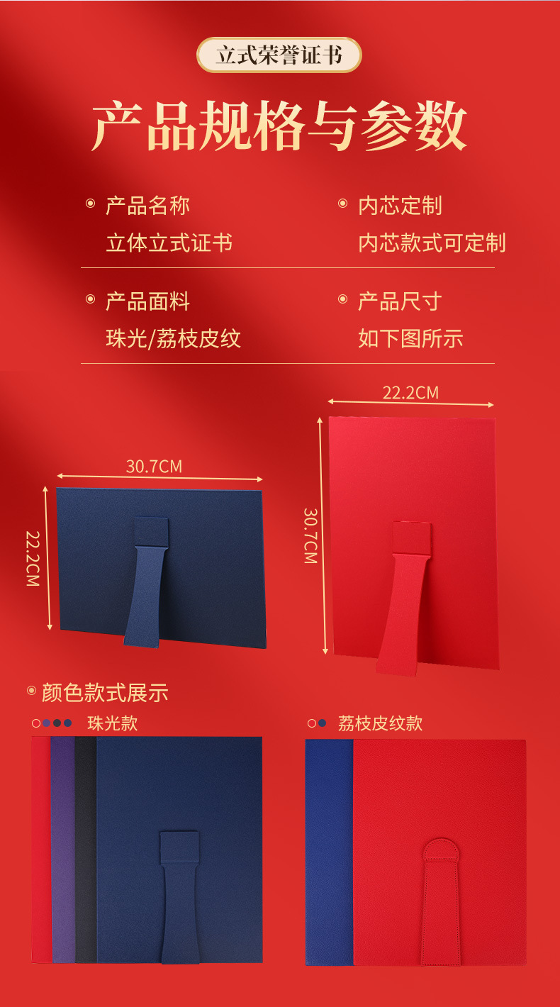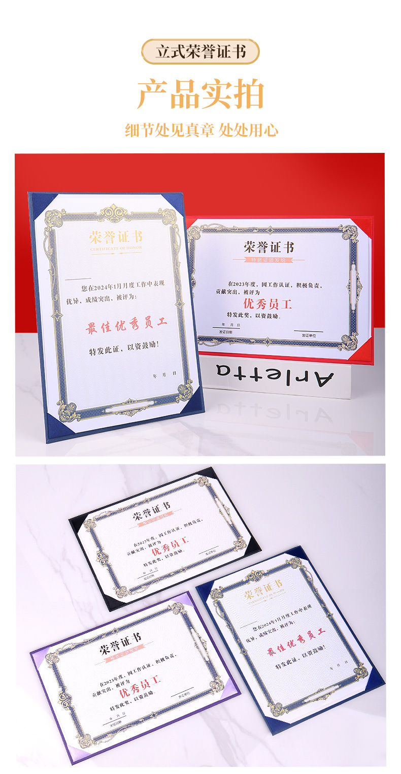 荣誉证书定制三折摆台式培训毕业外壳高级感珠光聘书结业获奖证书