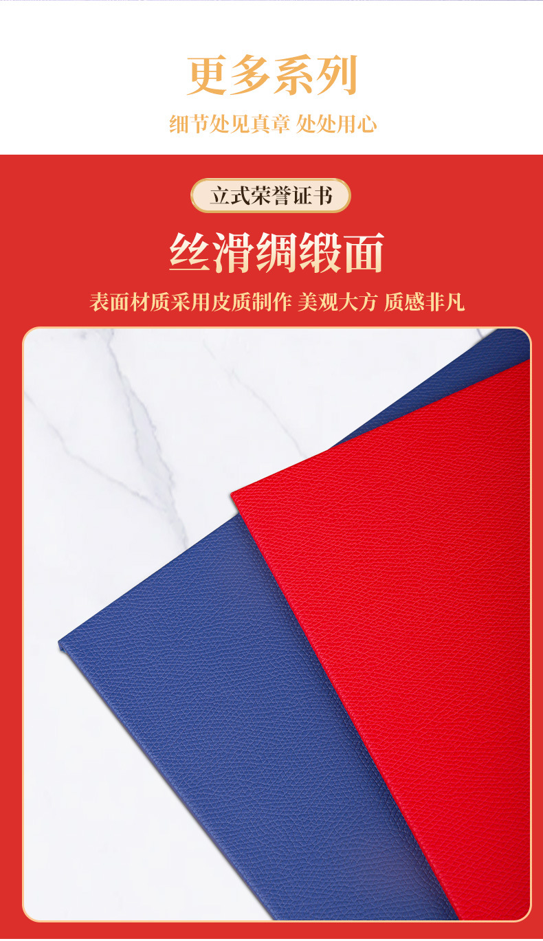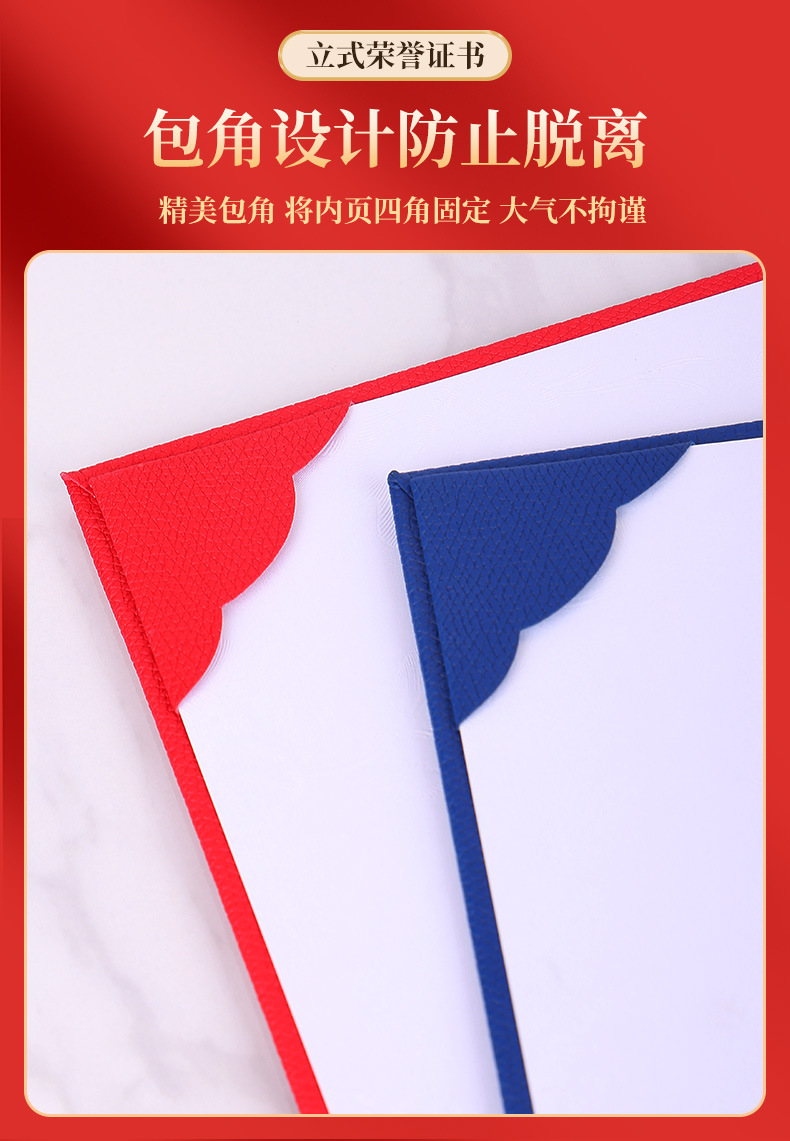 メーカー卸売名誉証明書カバー、就任状、赤と青のA4カバー、70% off パール光沢のある金箔押しカバー、印刷可能