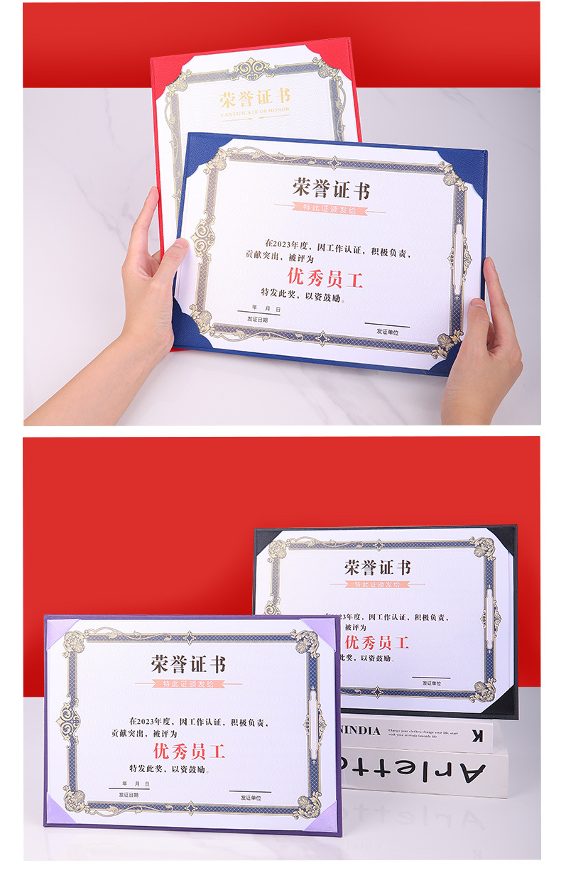 70% off ページのカスタマイズされた A4 汎用カバーケース、優秀な従業員賞、卒業証書、採用書、名誉証明書