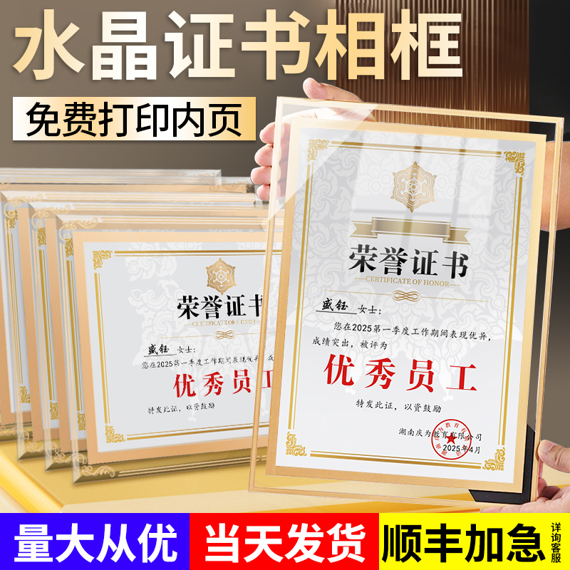 荣誉证书框证件书外壳奖状展示框利授权书高档聘书结业企业颁奖框