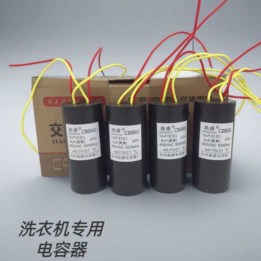 CBB60 ダブルバレル洗濯機コンデンサ 10+5/12+5UF/12+6UF 4 線式二重シリンダー始動および運転コンデンサ