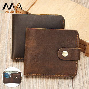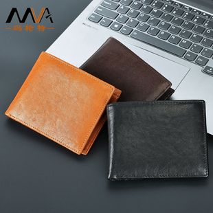 アマゾン男性本革ショート財布トップ牛革レトロ革ハンドバッグ男性用盗難防止ブラシrfidカードバッグ