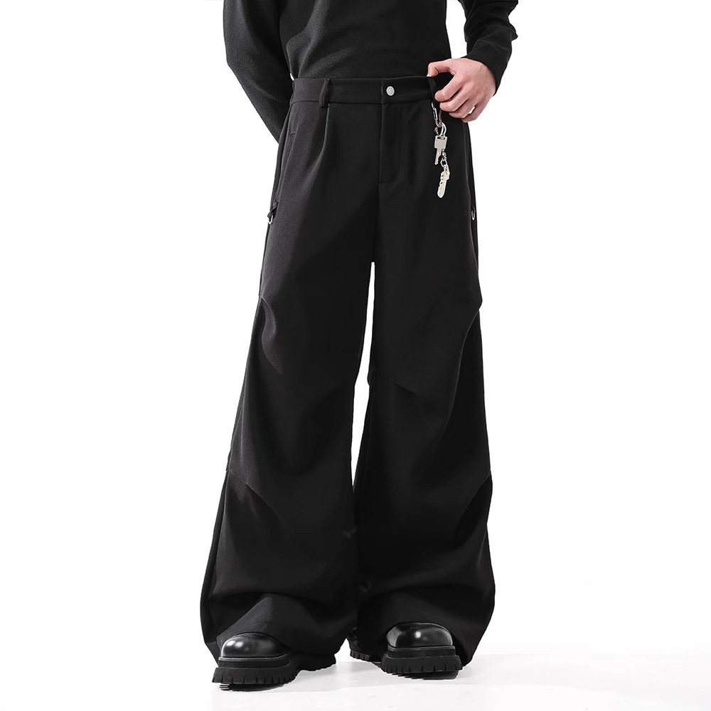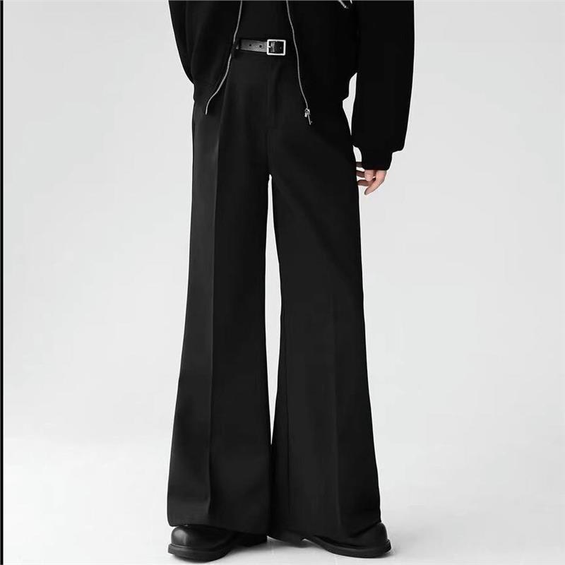 アメリカ風しわCleanfit通勤ズボン男性2025ペンダント感微ラッパ黒色スーツ長ズボン暗黒新製品