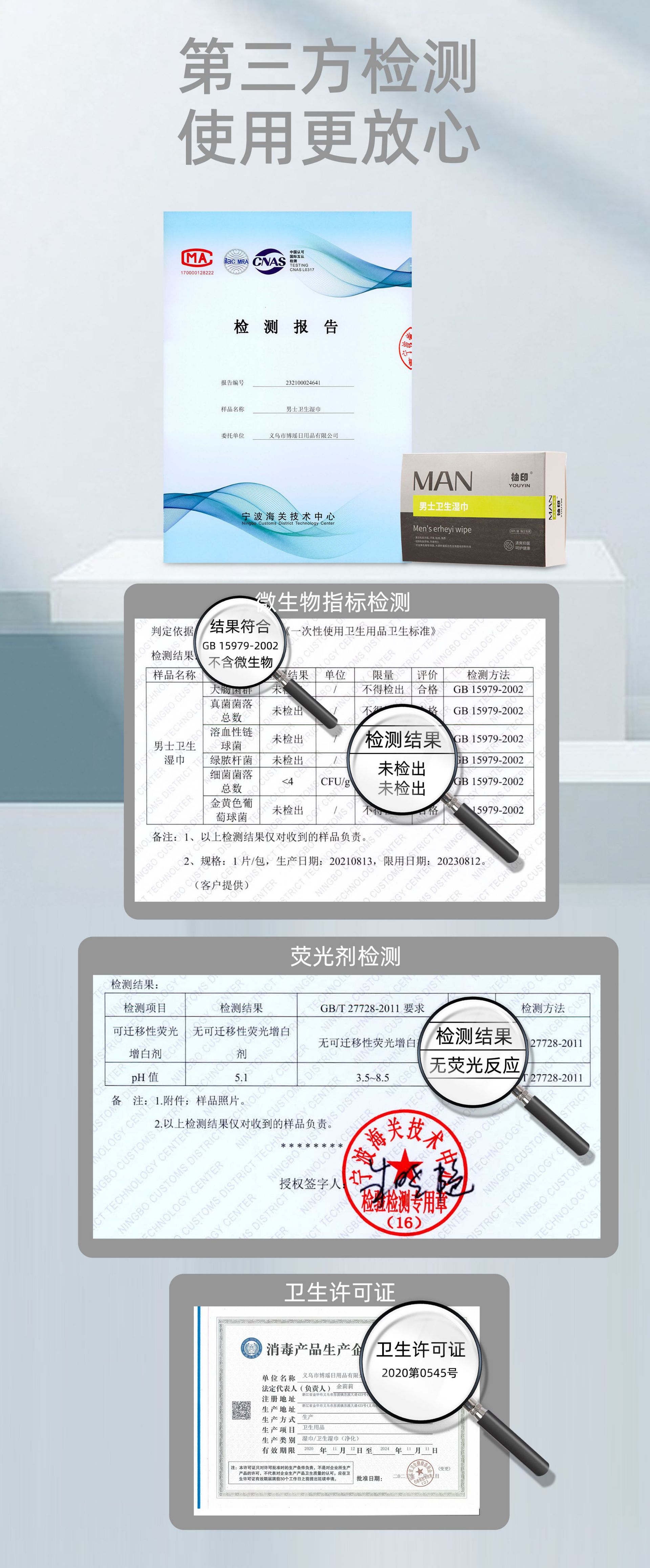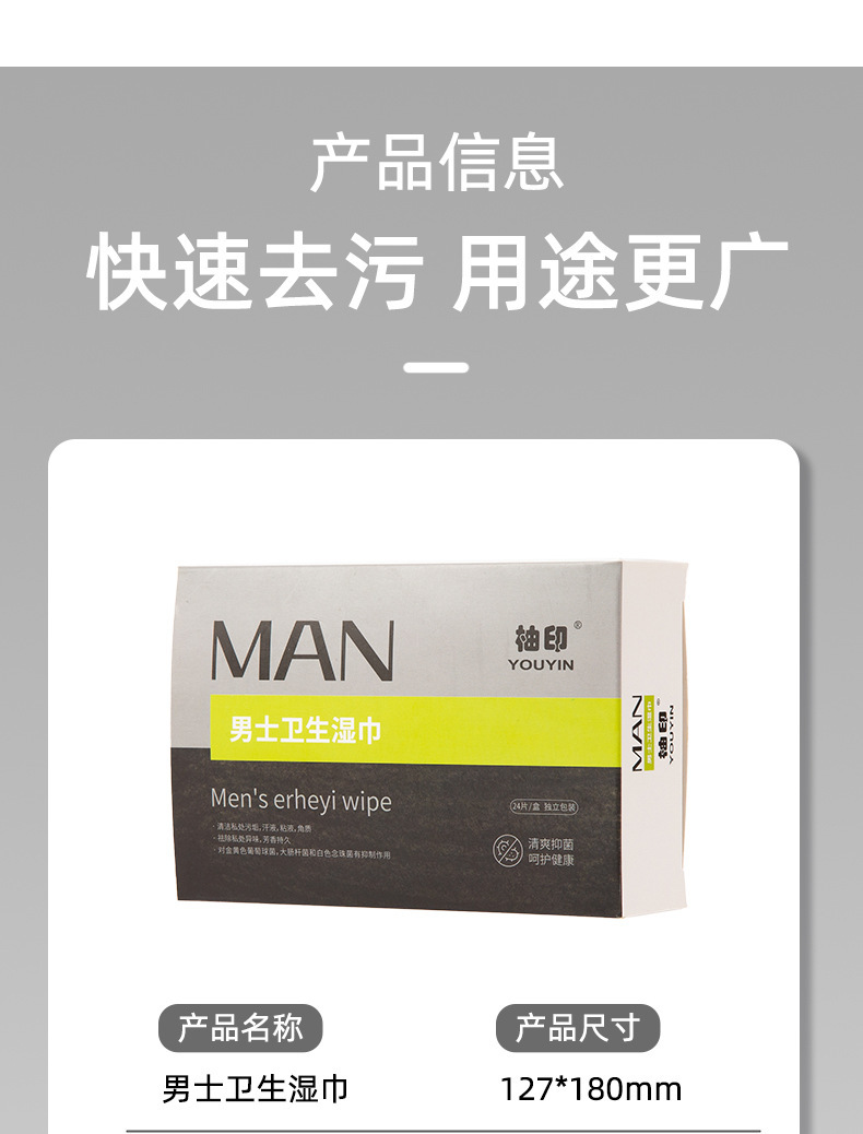 使い捨てホテルの携帯に便利な男性専用ウェットティッシュ男性衛生清潔ウェットティッシュ独立包装旅行
