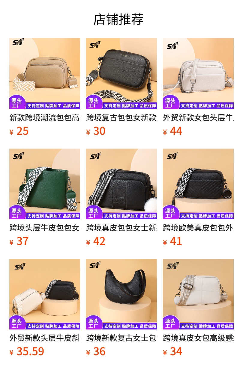 クロスボーダー新作一層牛革レディースバッグ、斜め掛けバッグ、ファッショナブルで多用途、大容量ショルダーバッグ、レトロな小さめバッグ、シェルバッグ