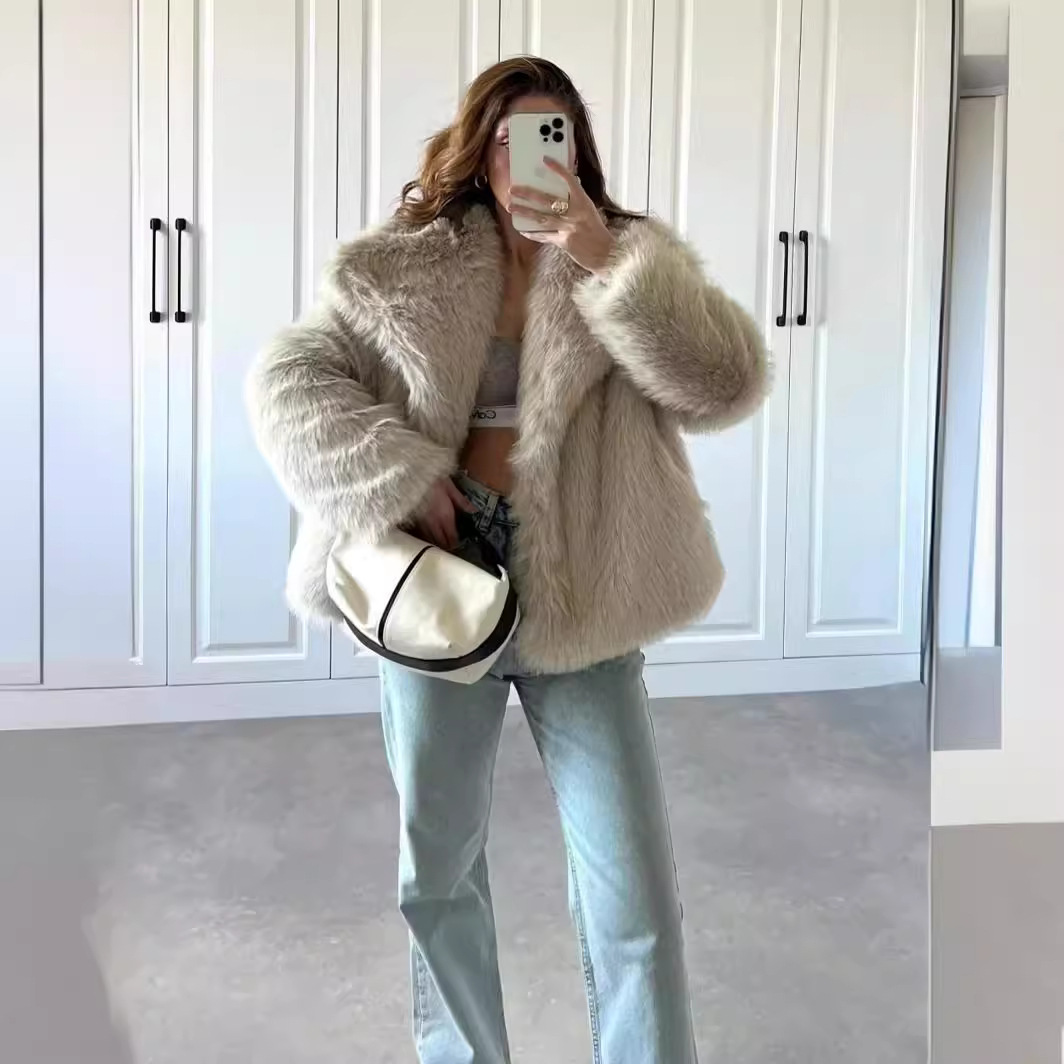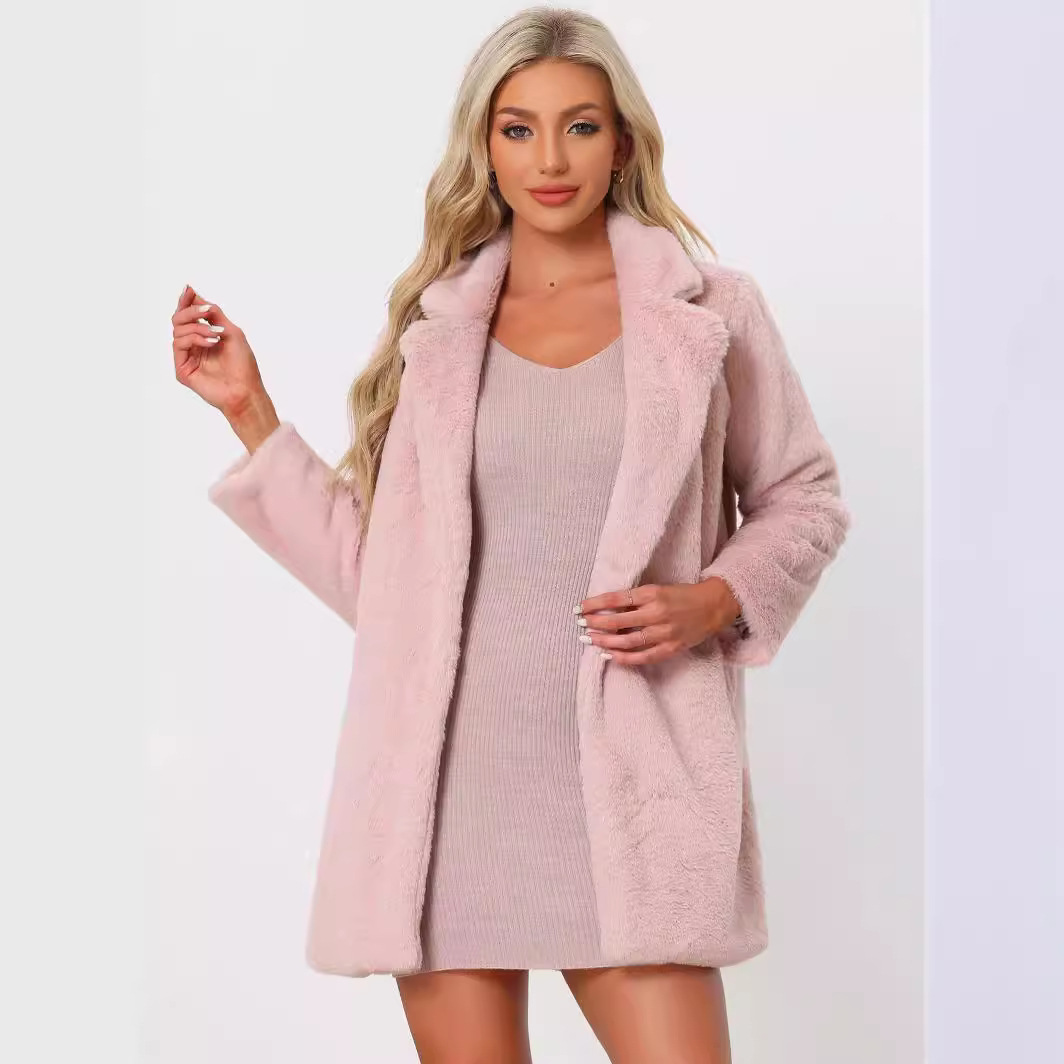 ヨーロッパとアメリカの人気の模造毛皮の大きなラペルの女性のトップス大きいサイズの毛皮のルーズコート卸売暖かい気質セレブ