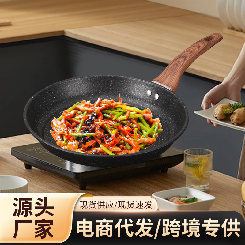 麦饭石平底锅煎锅炒锅无油烟煎蛋牛排不粘锅可代发temu等平台铁锅