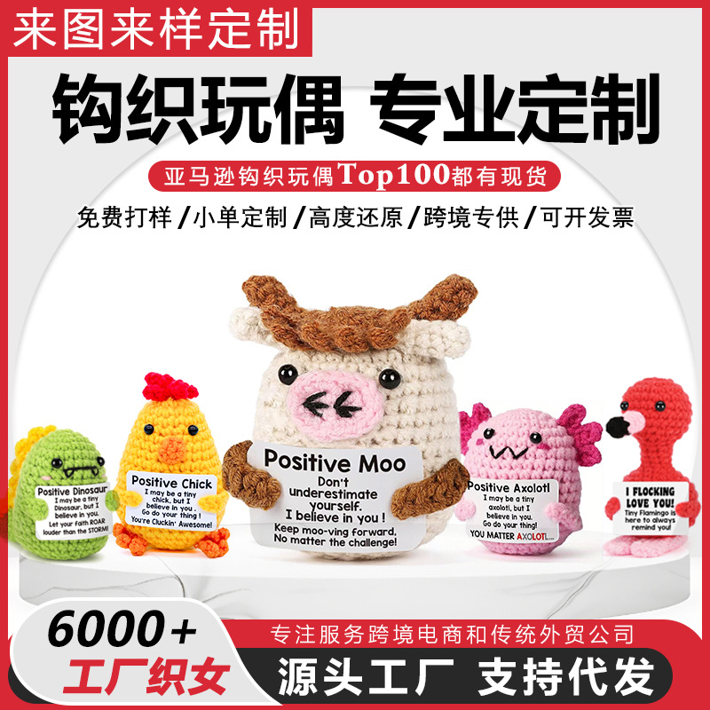 越境アマゾン手編み人形完成品 小熊 小牛 漫画風 かわいい手編みデスクトップ飾り