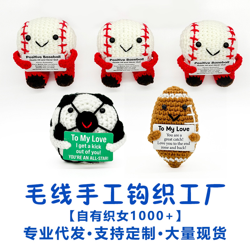 纯手工钩织新品棒球橄榄球抱卡足球玩偶微笑积极表情摆件桌面摆件