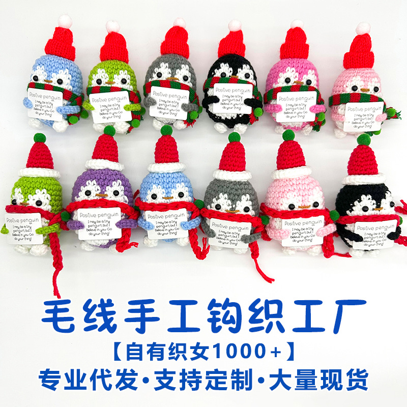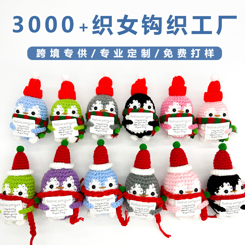 跨境亚马逊手工钩织玩偶圣诞节礼物圣诞企鹅情侣企鹅正能量表情包
