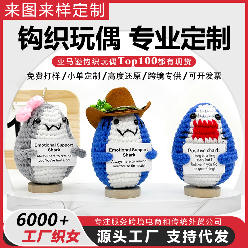 跨境成品超萌鲨鱼玩偶手工毛线钩织毛绒玩具送礼物桌面摆件正能量