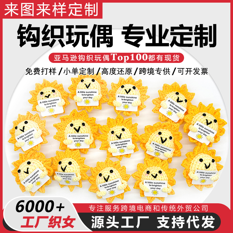 跨境热销手工钩织玩偶钥匙扣抱卡向日葵可爱表情包情感支持创意礼