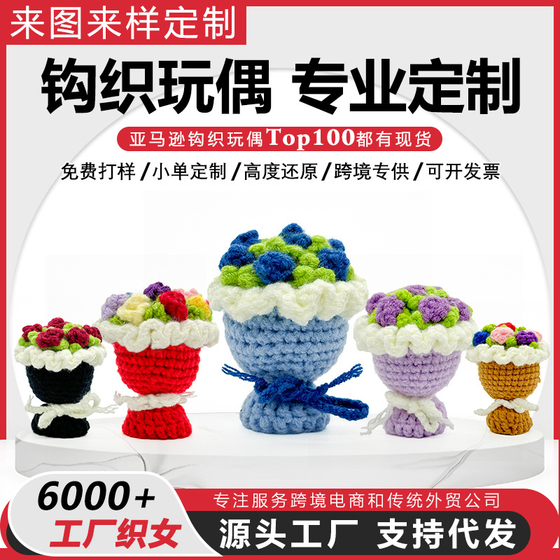 手作りの毛糸ニットの花束の誕生日プレゼント