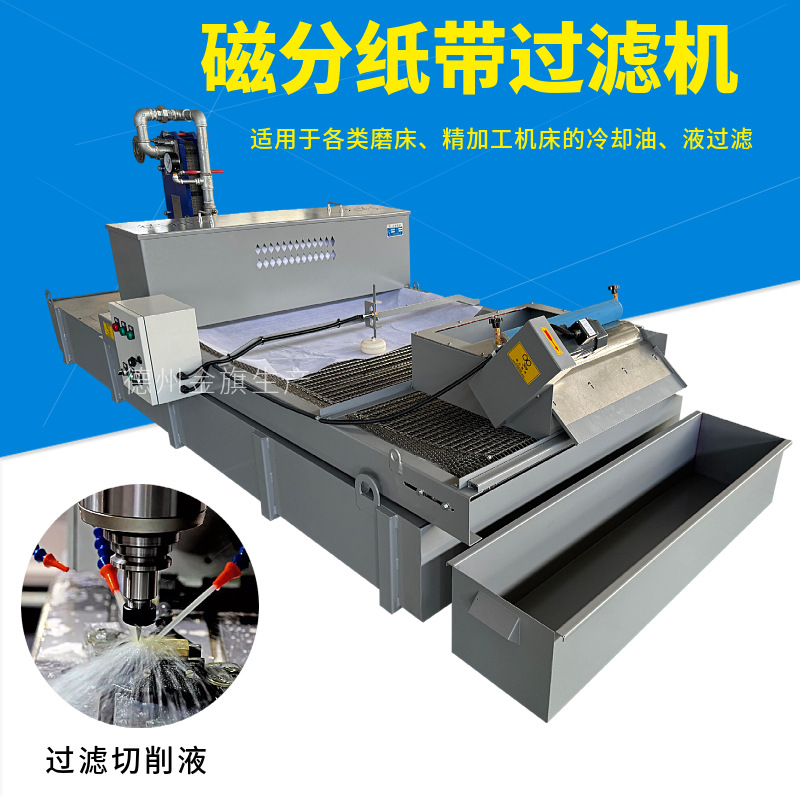 磨削铁磁性材料时,废液中既有铁磁性物质又有非铁磁性杂质,一般选用磁性分离器,除去大部分的杂质。如需更好的控制过滤精度,最好是将磁性分离器和纸带过滤机组合使用。